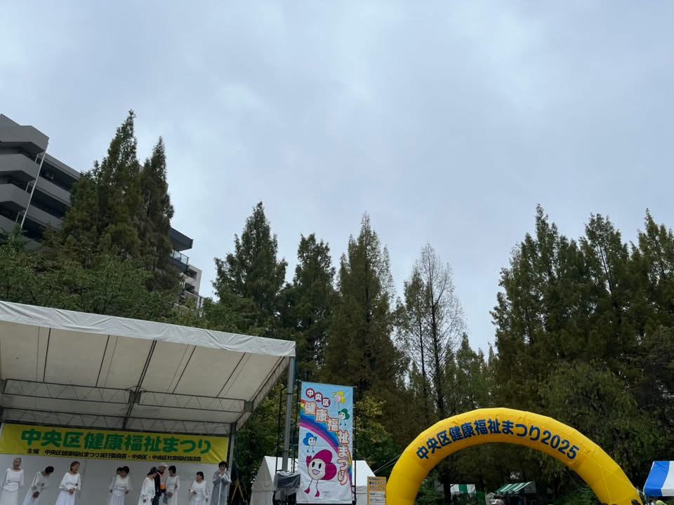 時折小雨が降る中、中央区保健所とあかつき公園で「中央区健康福祉まつり」が開催されました。